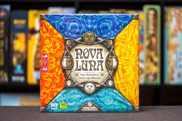 En Nova Luna encontramos un juego de losetas en el que mediante adyacencias deberemos ir cumpliendo las tareas que vayan surgiendo. Mediante la gestión espacial y una colorida producción, el jugador que se quede antes sin fichas será el ganador. Nova Luna se desprende del tema, aunque lo recubre con un diseño atractivo inspirado en la astronomía clásica que hace que el juego atraiga las miradas.